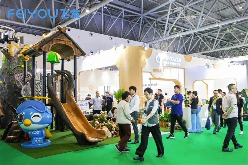 The exhibition opened grandly, and Feiyou brought its carefully developed "Jungle Crossing" combination slide and a new series of children's furniture to the exhibition. With its new technology and high cost-effective products, it attracted many dealers and educational institutions to visit and consult.