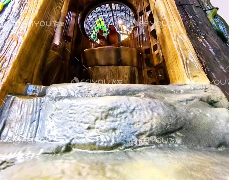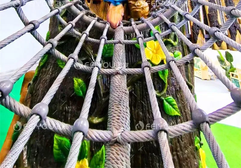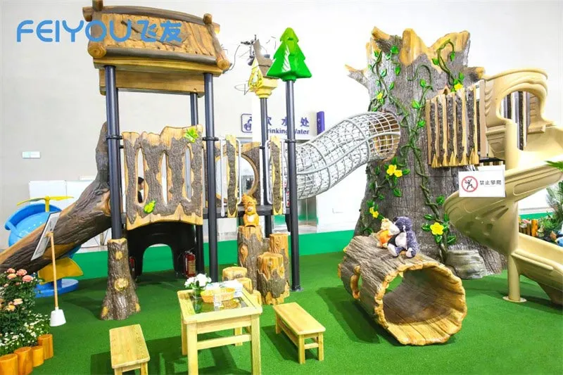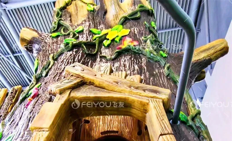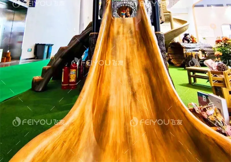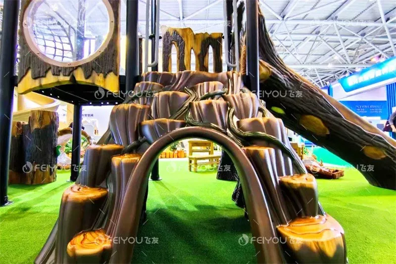 Feiyou’s new product “Jungle Crossing” adopts a brand-new technology, which solves the problem of outdoor wooden toys being difficult to prevent mildew and corrosion and having high maintenance costs; it has a natural and ecological appearance; compared with fiberglass materials, the cost is reduced by more than 50%, making it cost-effective and more environmentally friendly.