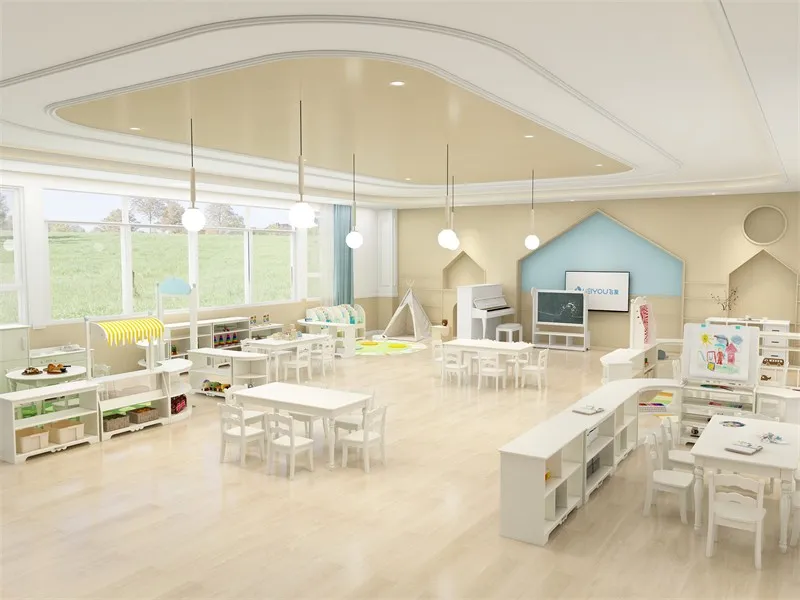 The placement and arrangement of kindergarten furniture should follow certain principles, such as furniture should be away from windows and power sockets to avoid children touching; there should be enough passages between furniture to facilitate children to pass; the color and style of furniture should be coordinated with the overall style of the kindergarten to create a warm and comfortable atmosphere.