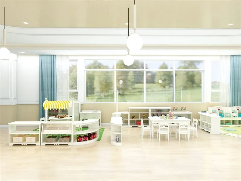 Preschool Wood Furniture mainly includes activity area furniture, sleeping area furniture, study area furniture, etc. Activity area furniture includes tables and chairs, toy cabinets, bookshelves, etc., which are used to meet the needs of children's games, learning and other activities; sleeping area furniture is mainly beds and bedside tables for children to rest; study area furniture includes desks, chairs, bookshelves, etc., which are used for children's reading, writing and other learning activities.