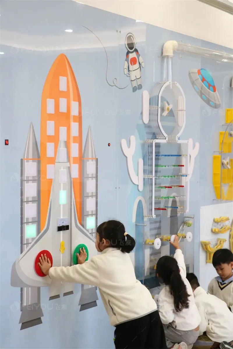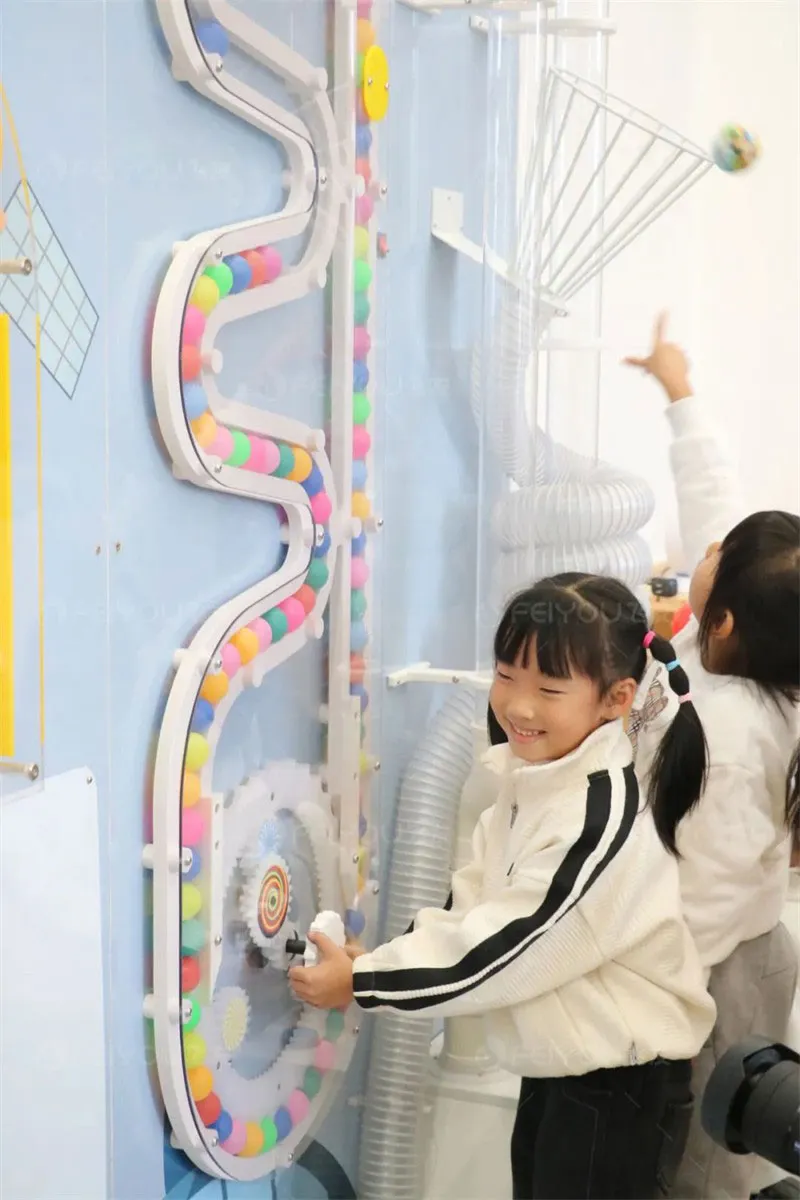 As a highlight of our indoor environment creation, the science exploration wall cleverly integrates a variety of interactive display elements such as the gear ballway. It not only allows children to understand the mystery of mechanical gear transmission in interesting games, but also stimulates their curiosity to explore the world.