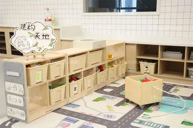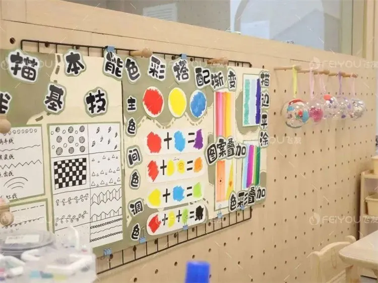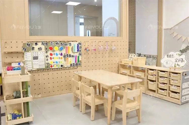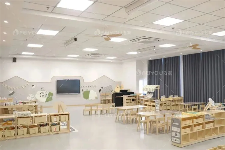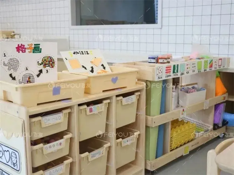 The classroom environment is simple and bright. The space design is based on the standard of being within the children's sight and reachable with both hands. The height and size of all items are suitable for children, making it easy for them to take and put away, and also convenient for teachers to observe and supervise.
