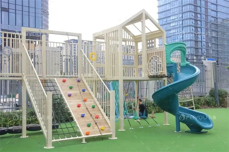 Facilities such as slides, climbing nets, climbing ropes, megaphones, swings, and swinging bridges installed on the bridge meet the gaming needs of children of different ages.