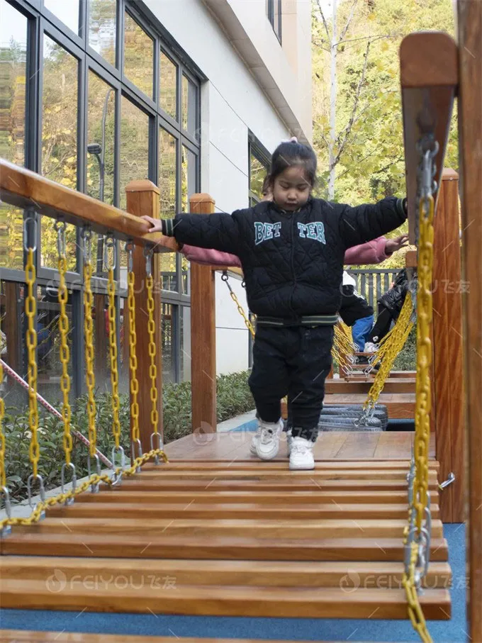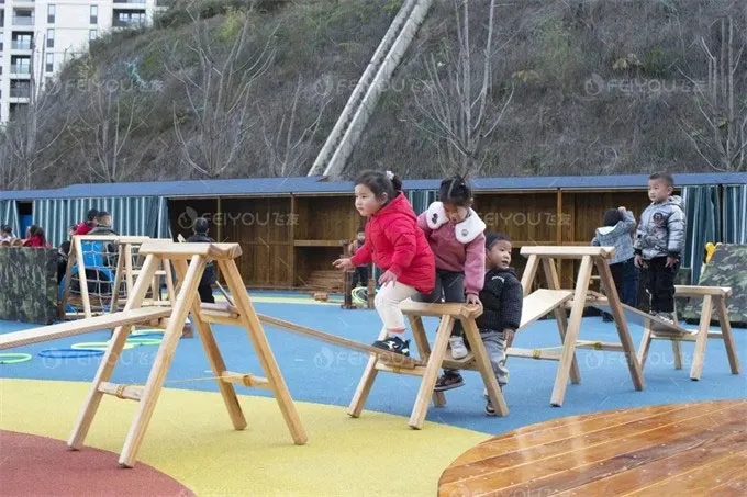 Elements such as balance beams create a fun playground, allowing children to fully exercise their body balance and limb coordination during the game.